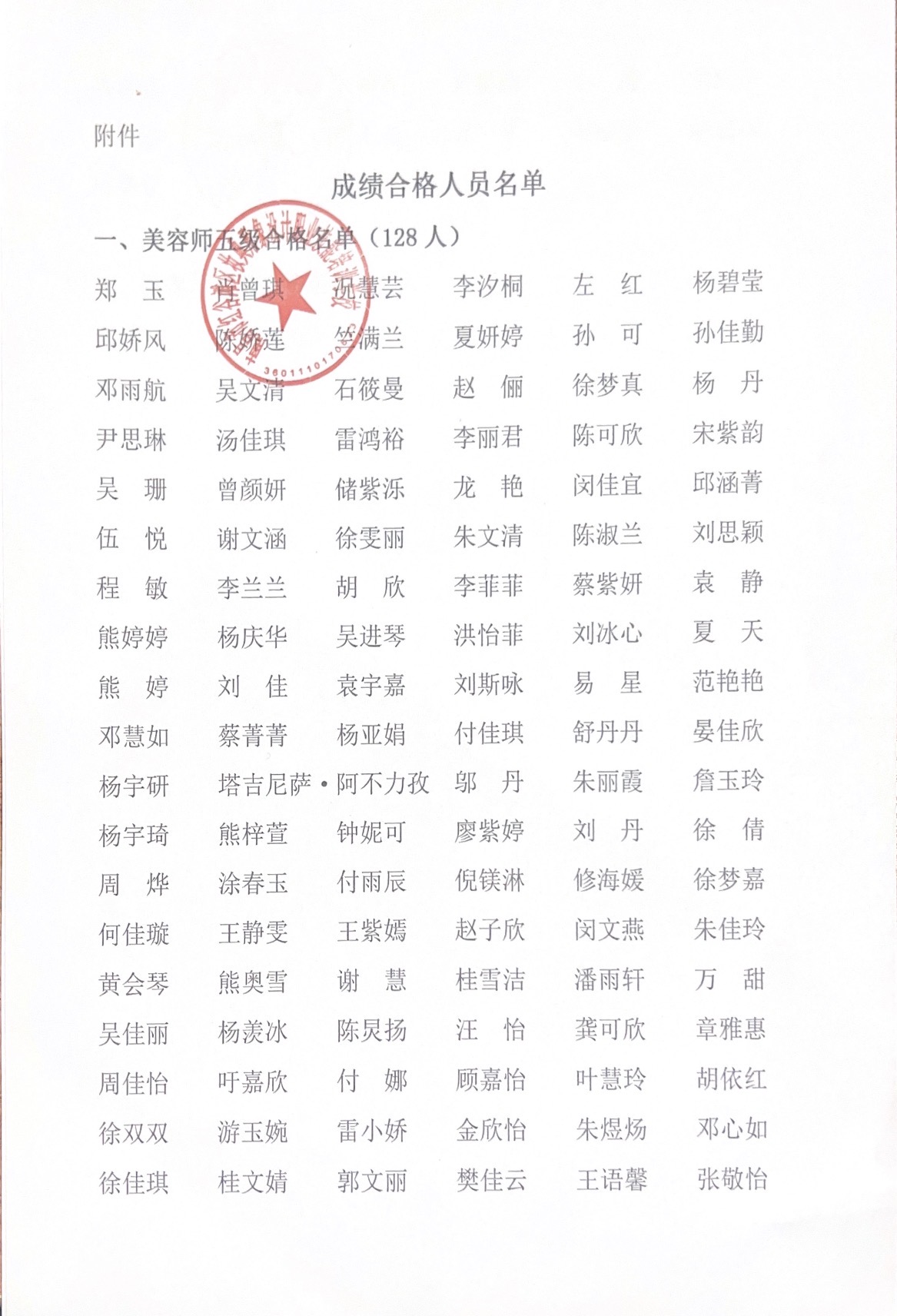 2025年11月06日至11月08日,南昌市红谷滩区妆典形象设计职业技能培训学校在红谷滩万达广场中心写字楼B2座16楼组织了一期职业技能等级认定工作(美容师:五级/初级工、四级/中级工),现将郑玉等129人考核成绩合格人员名单公示如下(具体名单附后),如有异议,请于2025年11月14日至11月21日前向南昌市红谷滩区妆典形象设计职业技能培训学校考务办反映。地址:南昌市红谷滩新区会展路999号万达中心写字楼B2座16楼考务办联系人:彭常青,联系电话:18170926786。