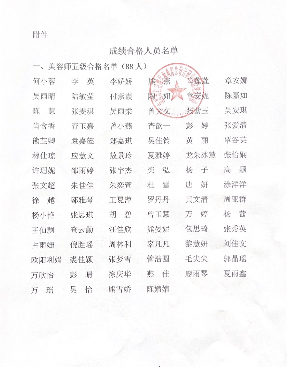 一,美容师五级合格名单(88人)